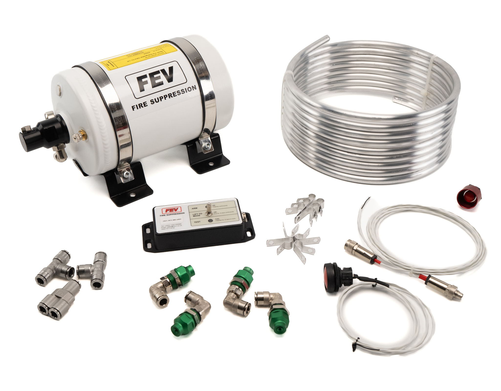 The FEV Fire Suppression CF-TEC range includes products suitable for meeting FIA Technical List 97. The CF-TEC Series uses Coldfire, an eco-friendly, sustainable agent that rapidly removes heat, offering unmatched protection for motorsport vehicles.C ompatible with fuels up to 85% ethanol, CF-TEC combines safety, performance, and sustainability.